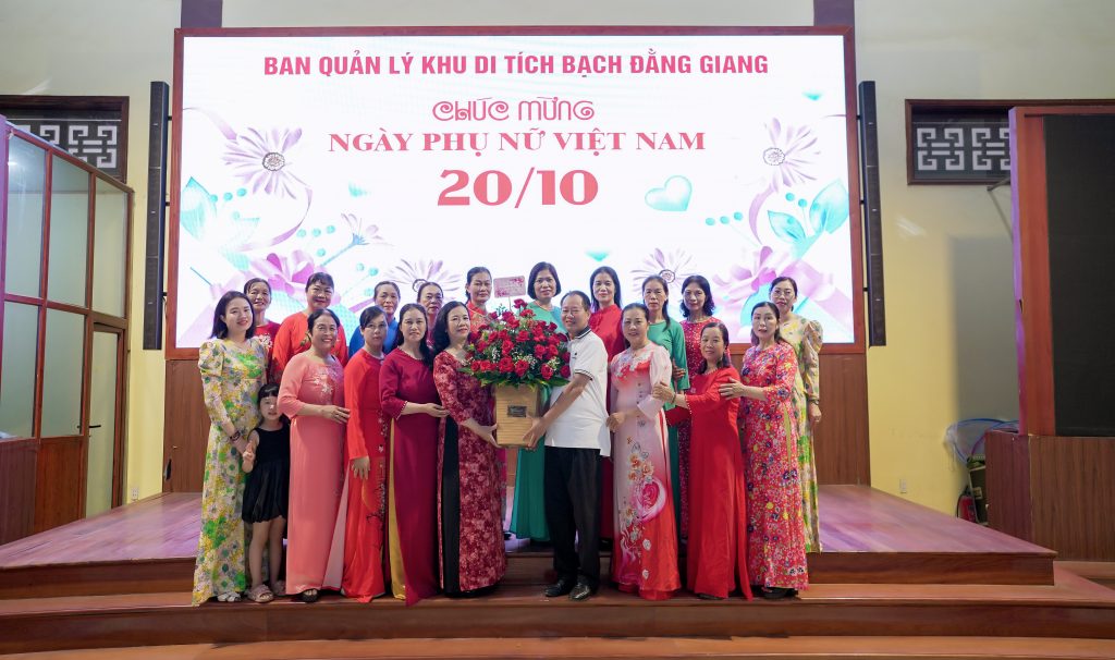 Chiều ngày 19/10/2025, trong không khí hân hoan chào mừng Ngày Phụ nữ Việt Nam 20/10, Ban Quản lý Khu di tích lịch sử Bạch Đằng Giang đã tổ chức buổi lễ kỷ niệm đầy ý nghĩa dành cho toàn thể cán bộ, nhân viên và người lao động đang công tác tại khu di tích.